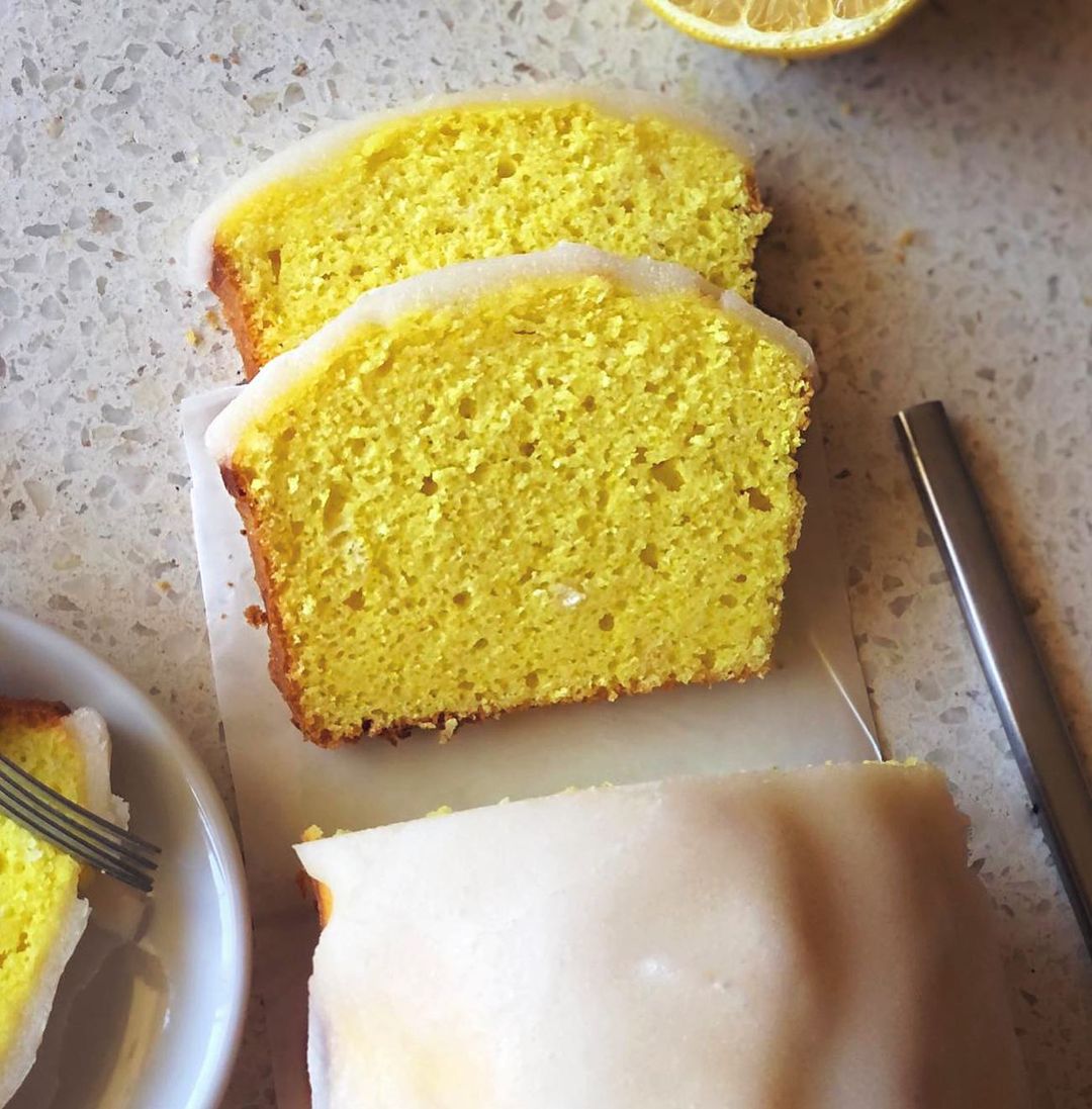 Incorporar el jugo de limón y la cucharadita de cúrcuma e integrar bien (sin mezclar fuerte). Colocar en budinera aceitada y enharinada y cocinar en horno precalentado a 180° de 40 a 45 minutos o hasta que introduzcan un palito en el medio y salga seco (vayan controlando así no se les pasa y queda seco).