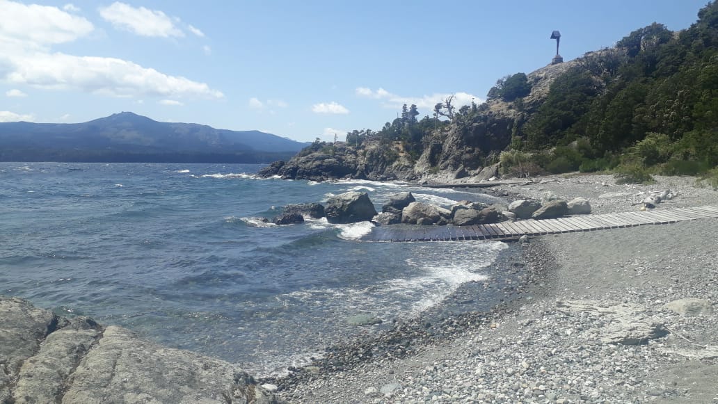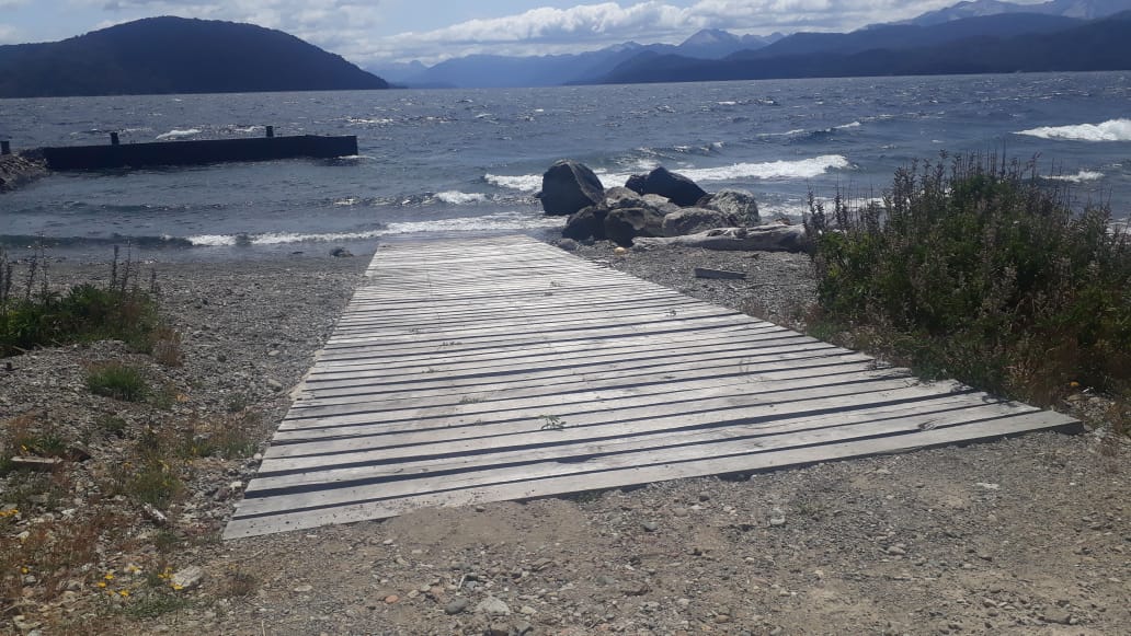 Las aguas del lago se encuentra agitadas por la intensidad del viento que comenzó a incrementarse a media mañana. El registro de las 12 del Servicio Meteorológico Nacional indica que el viento proviene del sector oeste con una velocidad de 50 km/h.