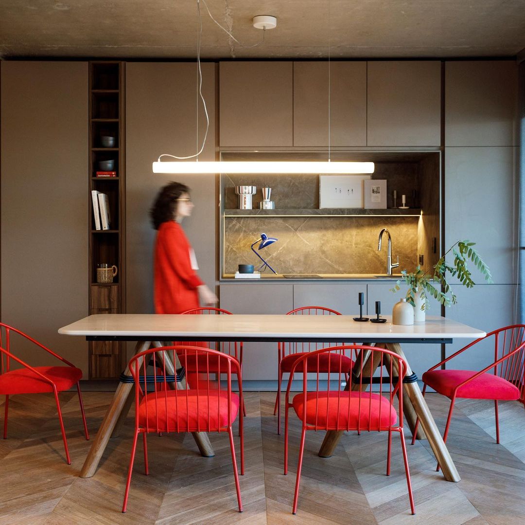 • Los sillones del living son reversiones de la silla Mar del Plata (diseño de Eduardo Aldacour) y sirven para ser usados en el interior y el exterior. Así que pueden trasladarse al balcón y reconvertir el espacio. También moverse fácilmente según la hora del día y las opciones de uso.