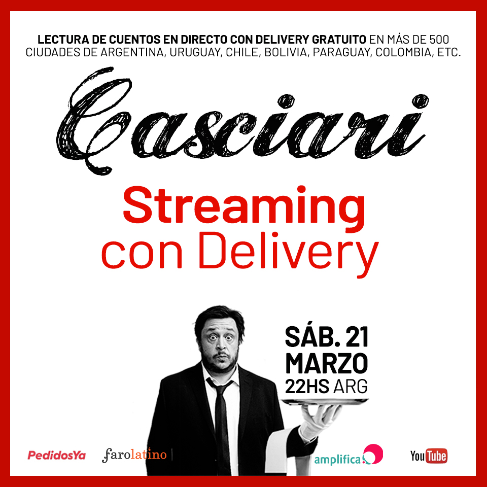 Hernán Casciari: Apenas me di cuenta de que iba a tener que suspender todas las funciones de marzo y abril, que incluían fechas en México, Nueva York, Miami, Chile, Montevideo, Rosario, Mendoza, entre otras, y sabiendo que iba a estar complicado divertirse, rápidamente el streaming fue lo obvio para todos pero quería encontrarle una vuelta de tuerca. Finalmente se le terminó ocurriendo a la esposa de mi productor mientras él lloraba en posición fetal en su sillón porque vive de la venta de los shows: «¿por qué no le decís a Casciari, que tiene mucha comunidad online, que lo haga con delivery?».