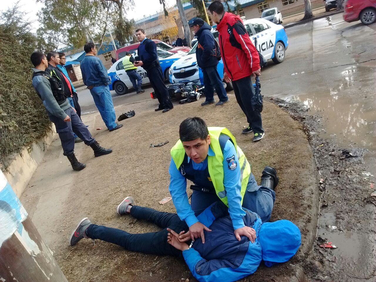 Según testigos, el hecho ocurrió alrededor de las 12.30, en la zona frente al hospital. El motociclista huía por la avenida del Libertador, luego de protagonizar un altercado en el barrio Los Pioneros en el que un hombre había sufrido una herida de bala.