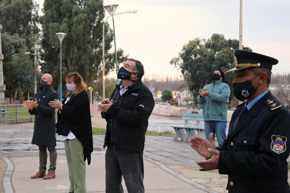 En un breve contacto con la prensa durante el izamiento de los pabellones nacionales –no hubo acto del día de la Bandera pero sí presencia conmemorativa en la plaza de las Banderas- Bertoldi adelantó que se evaluaba “acompañar” las medidas que regirán a partir del lunes con la reducción del horario tope para circular y comerciar hasta las 20.