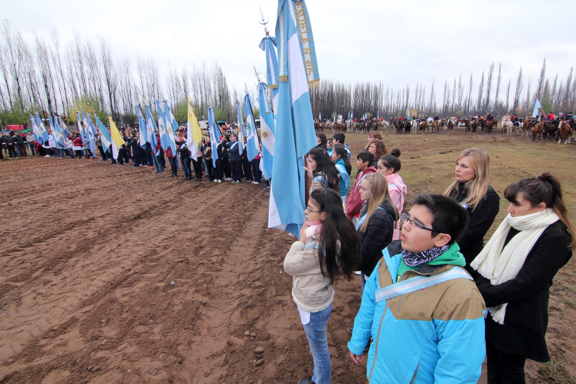 En el participaron alumnos abanderados de las escuelas de la localidad y jinetes del lugar.