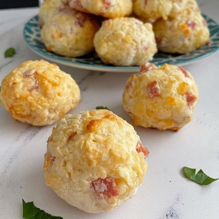 Colocar en un bol los quesos rallados, el huevo, el jamón, la sal y mezclar. Agregar la fécula de mandioca, el polvo para hornear y la leche. Formar una especie de masa “granulada”, no queda un bollo de masa, queda como una textura arenosa húmeda.