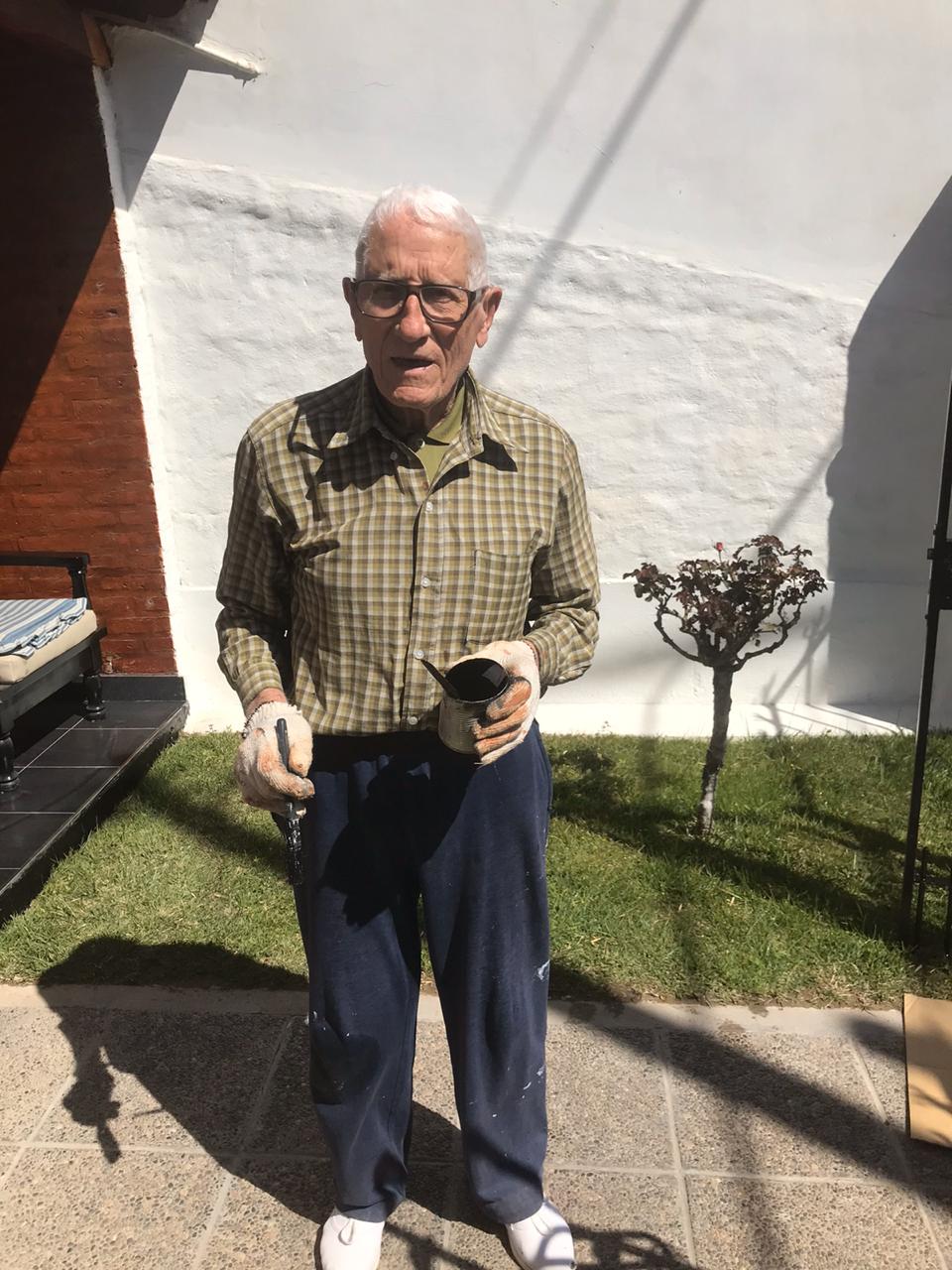 Hace tres años falleció «Chefa», su esposa. «A partir de ese momento, temimos por él, pero no, él está muy bien. Y en estos días pinta las rejas, pintó el frente de su casa; no se cocina porque la hija hace que le cocinen. Pero él vive solito y es un pedazo de hombre, tiene mucha fuerza. Jamás se queja de algún dolor, es admirable. Este tiempo lo ha pasado mucho más solo. Aunque su hija Mabel, de 65 años, ha querido llevárselo a su departamento, él no quiere moverse de la casa. La limpia él solo, se lava su ropa», cuenta su vecino Orlando.
