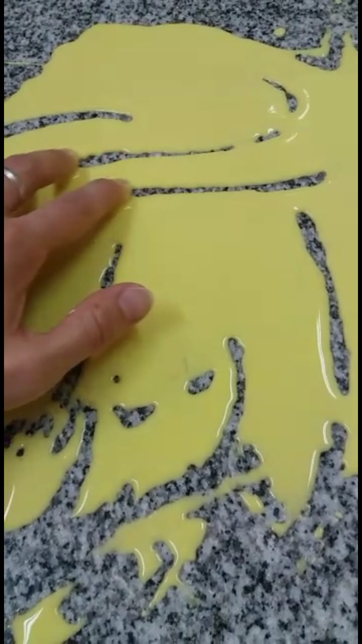 Poner un poco de mezcla sobre una servilleta de papel y recoger el almidón haciendo un rollito. Dejar sobre la mesada y esperar.