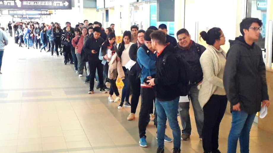 Hombres y mujeres llegaron hoy, cuando aún no aclaraba por completo el día, a la Estación de Omnibus de Neuquén para lograr un buen lugar en la fila y dejar su currículum Vitae.