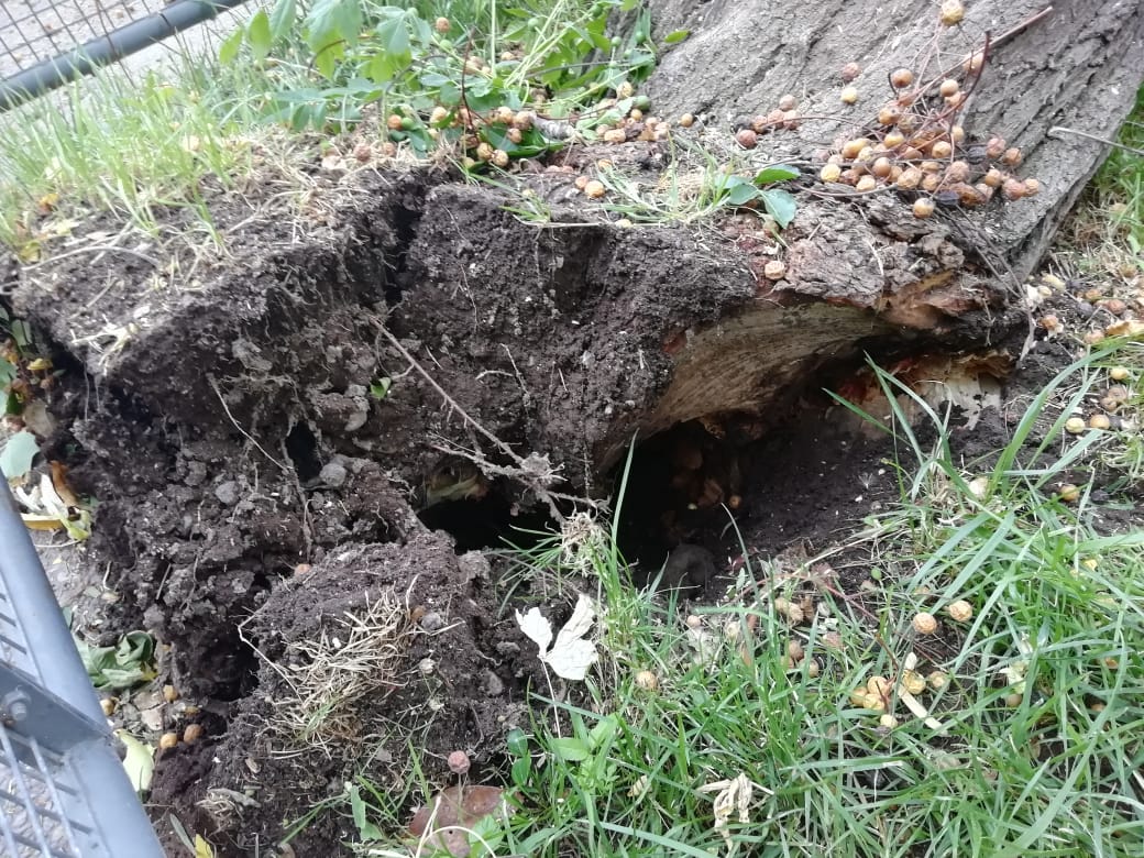Cuando se asomó por la ventana, se encontró con esta postal. Al parecer, la raíz del árbol está podrida y eso debilitó el troncó que cayó por la acción del viento. Afortunadamente tiene seguro y todo indica que le brindarán cobertura.