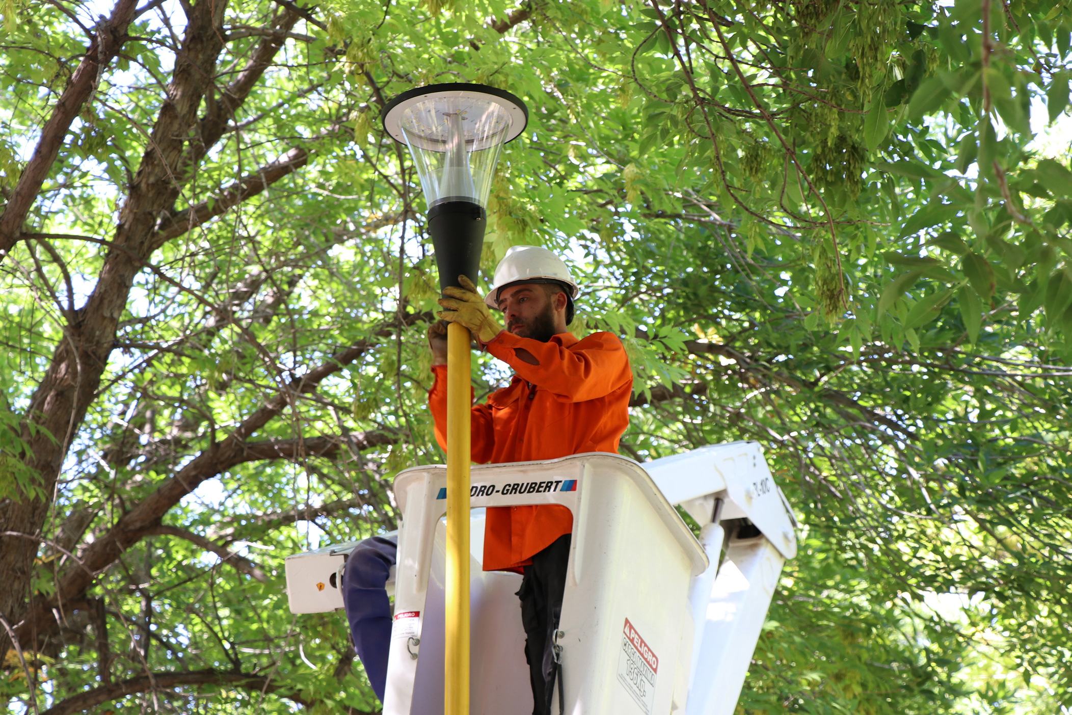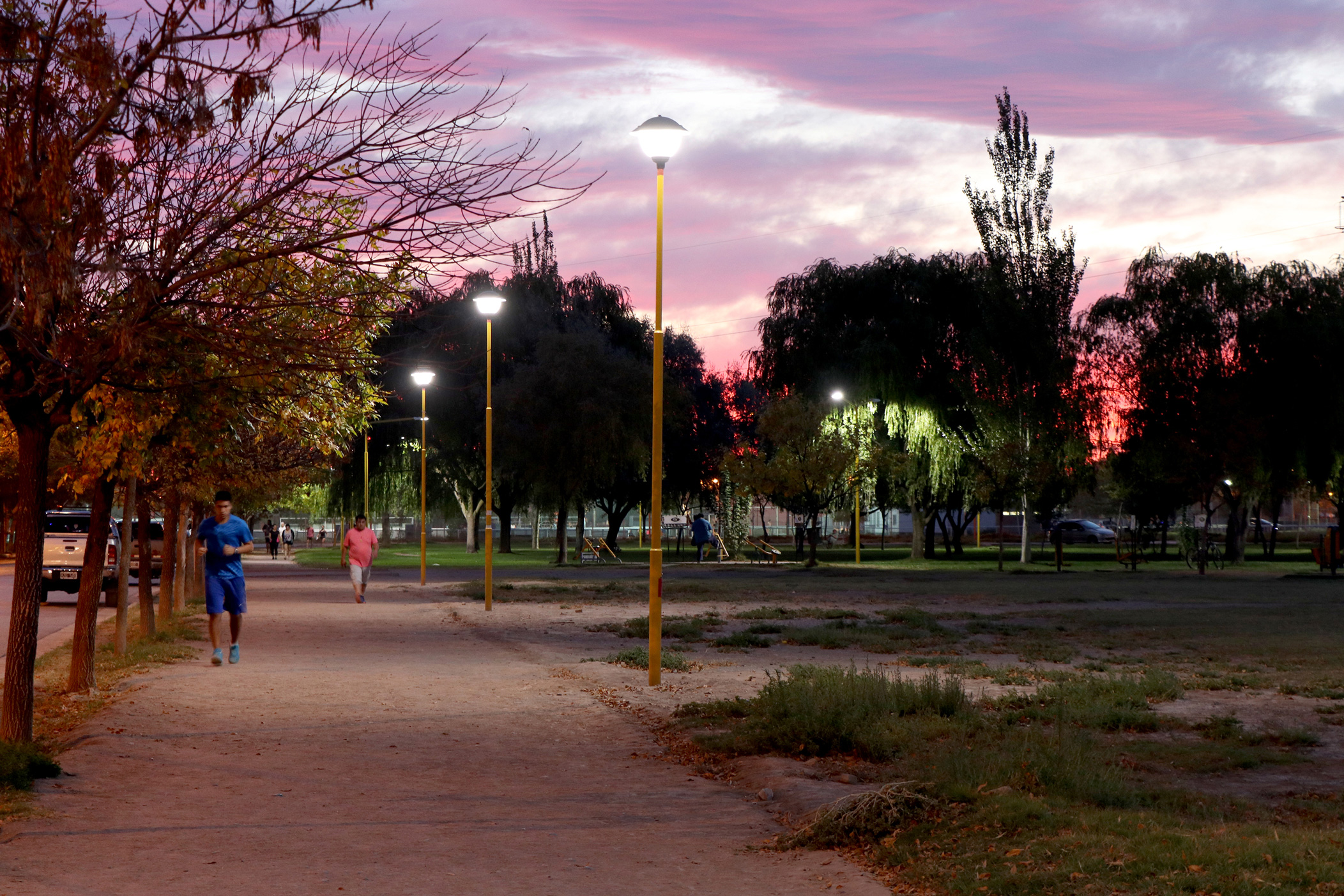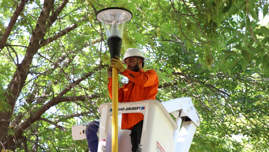 El recambio de las viejas luces de sodio por modernas luces led es una objetivo que se va cumpliendo tanto en algunos barrios, en la zona centro como en los espacios verdes mas grandes de Cipolletti.