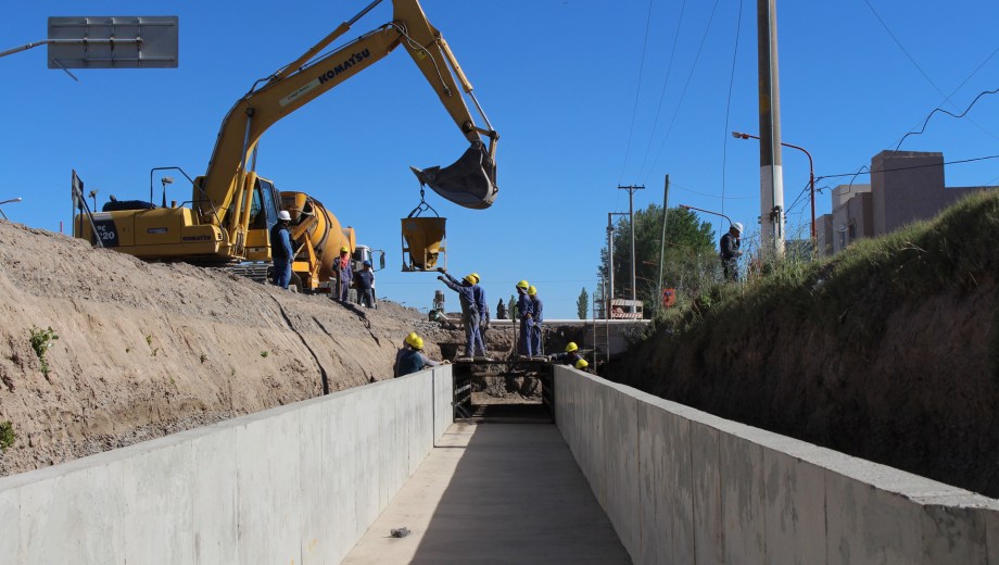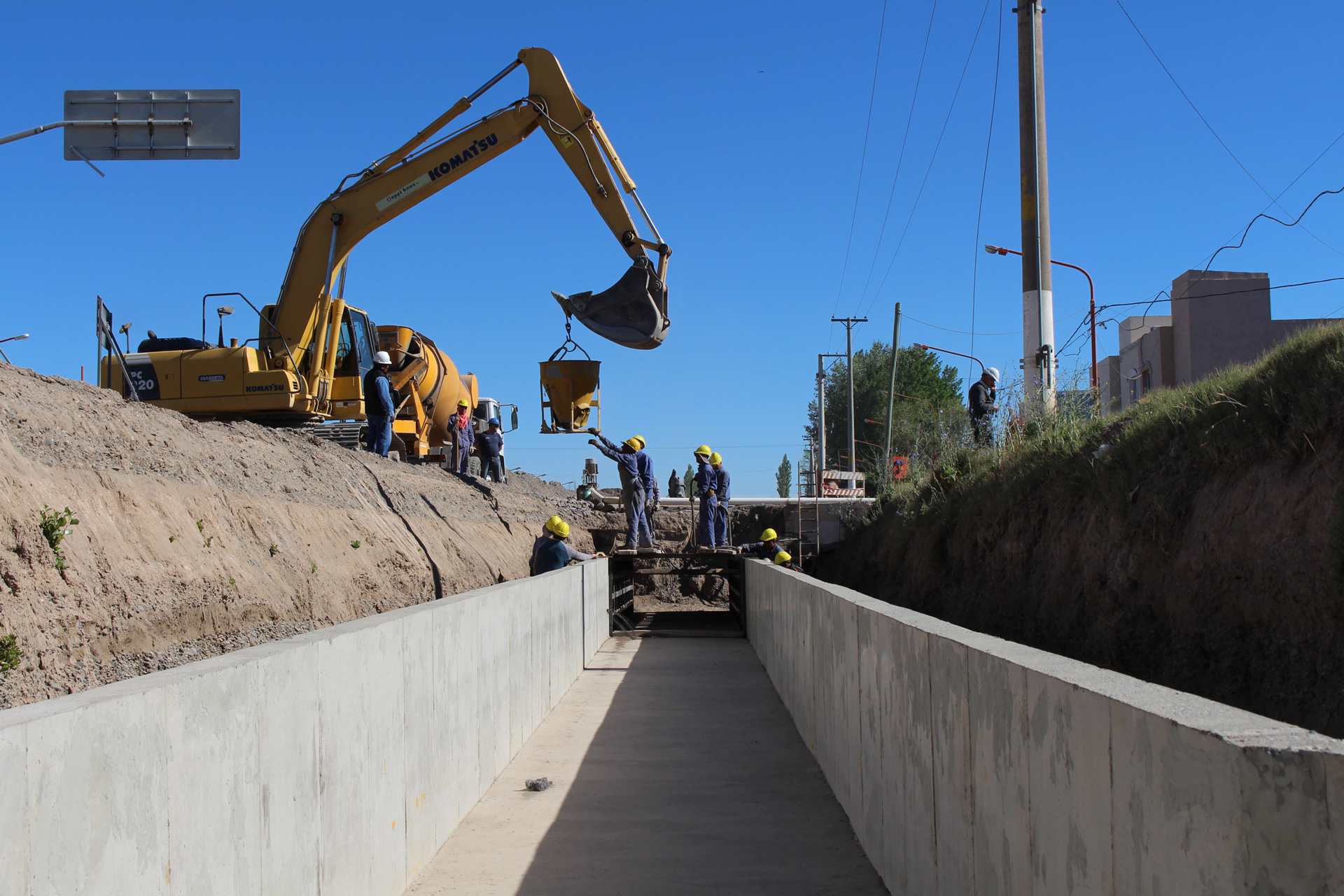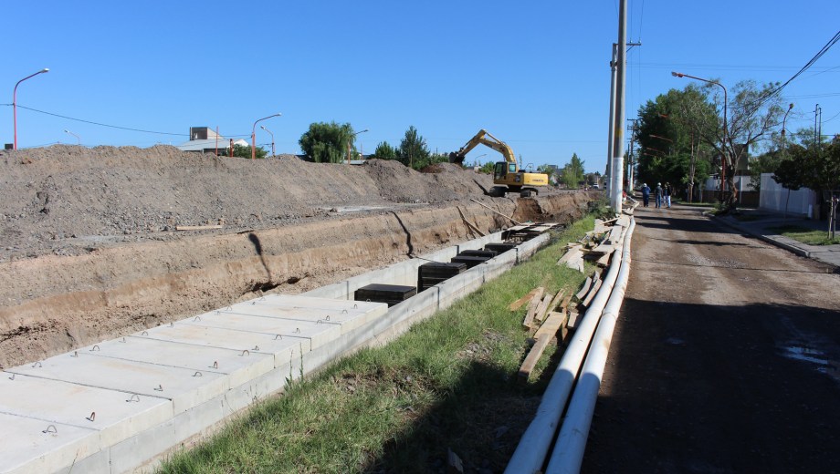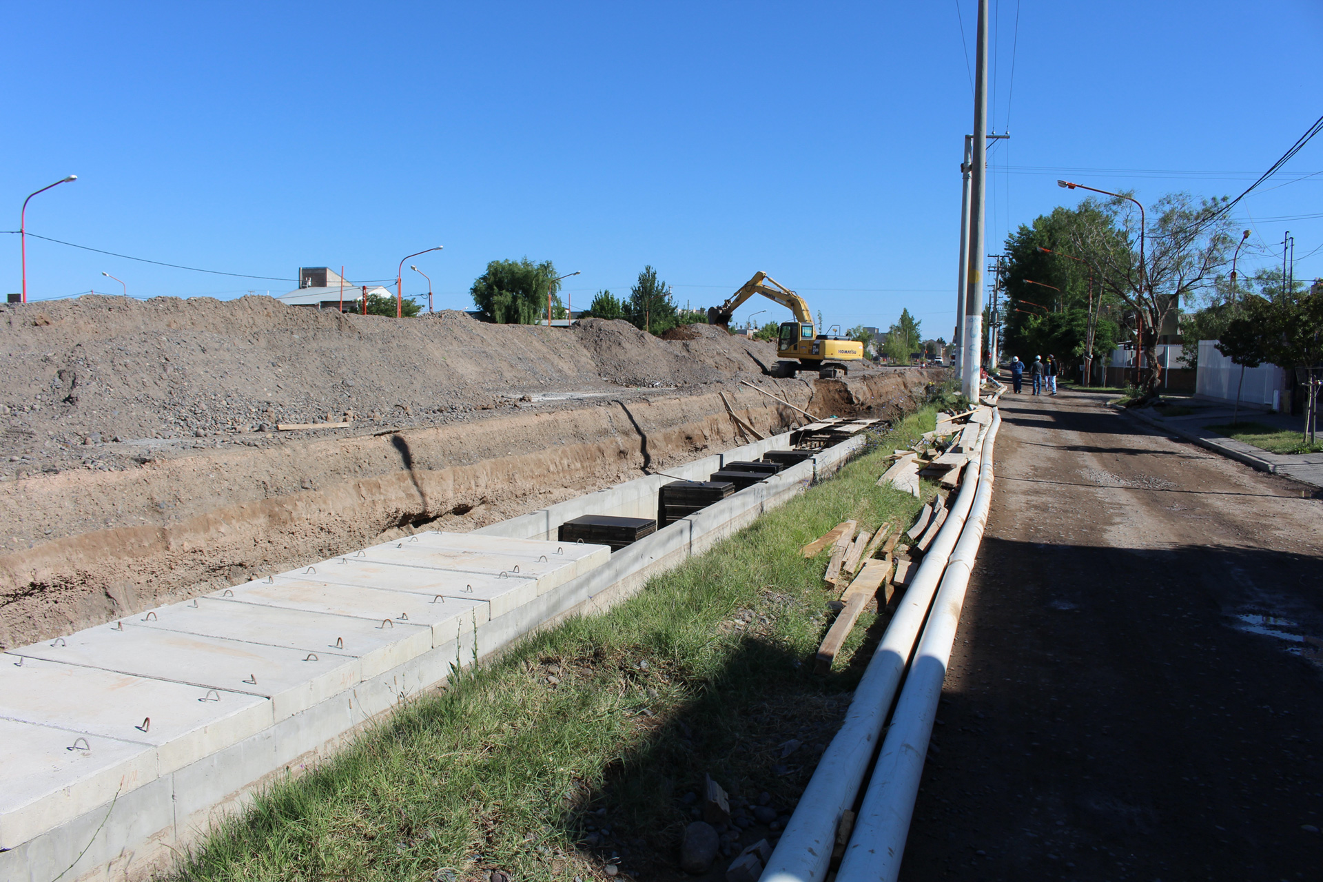 Se terminó con la primera etapa del imponente Desagüe Pluvial sobre Juan Domingo Perón en la que la municipalidad invirtió 80 millones de pesos. Los trabajos estuvieron enfocados en el camino de circunvalación entre Vélez Sarsfield y Bolivia, esta última con conductos construidos hasta calle Naciones Unidas. El pluvial tiene una extensión de 2.700 metros. Cuenta con una sección rectangular de hormigón de 2,10 metros por 1,20 metros y una longitud de 1.700 metros