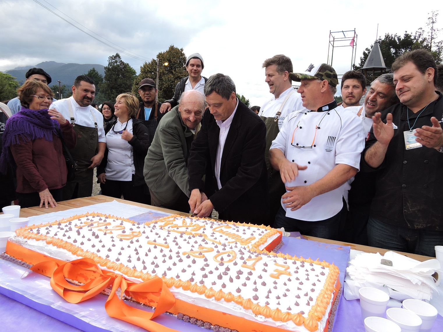 Una multitud acompañó ayer el cierre de la tercera edición del festival gastronómico “Cocina de los Lagos”, que tuvo como epílogo un almuerzo solidario consistente en 15 corderos al asador, una paella y 300 kilos de langostinos al ajillo –al disco-, que reunió fondos para los damnificados por el temporal de lluvias en Comodoro Rivadavia.