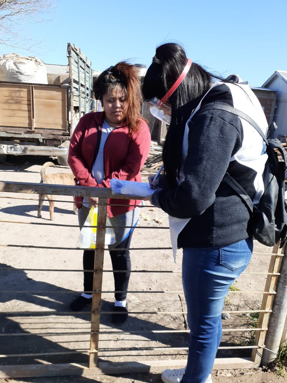 En esta oportunidad, el gobierno de Viedma junto a promotores del ministerio de Desarrollo Social de la Nación, entregaron kits de lavandina, jabón y alcohol en gel a las familias del barrio Unión.