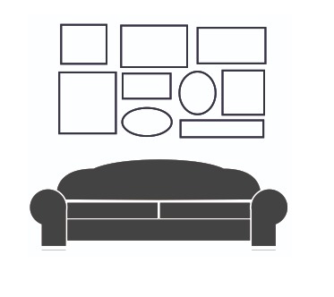 En cuanto a la distribución, existen numerosas posibilidades, pero antes de decidir por una, es aconsejable analizarla bien. Lo primero que hay que tener en cuenta son los elementos que van a convivir con los cuadros en esa pared (puertas, ventanas, muebles), porque ellos determinan el criterio a seguir. Se podrá tomar la totalidad de la pared o sólo una parte y esa decisión guiará la ubicación.