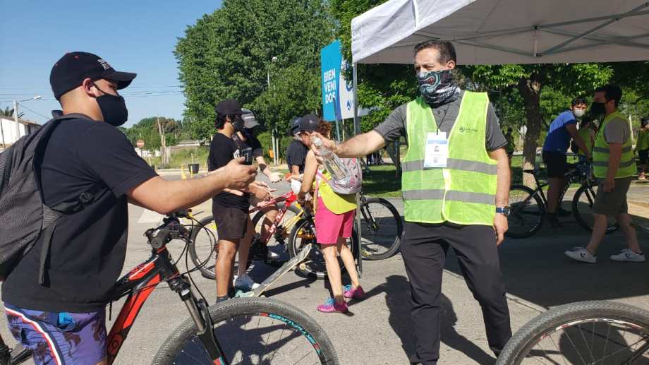 «Encontramos con muy buena recepción de la gente, si vienen caminando ya nos ven y estiran sus brazos para que sean sanitizadas las manos, o si están en bicicleta, de la misma manera. Se bajan y atienden a nuestro pedido», dijo María Pasqualini, quien estuvo esta tarde en el ingreso al Paseo de la Costa.