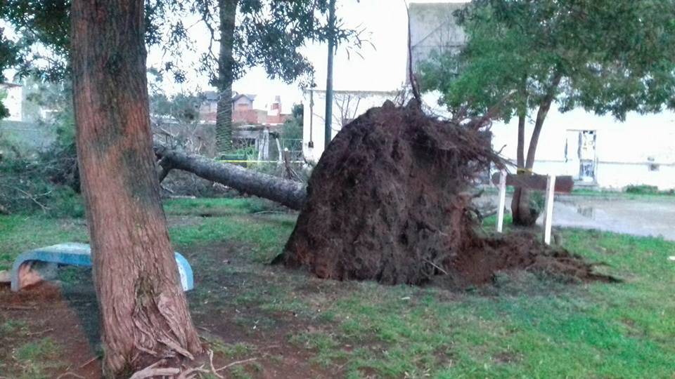 .Las diferentes áreas de la comuna –Servicios Públicos, Alumbrado, Inspección General, Seguridad, entre otras autoridades- junto a personal de Bomberos Voluntarios se encuentra trabajando desde anoche en los diferentes barrios, asistiendo a los vecinos que lo requieren, y solucionando los inconvenientes registrados por caída de árboles y postes de servicios.