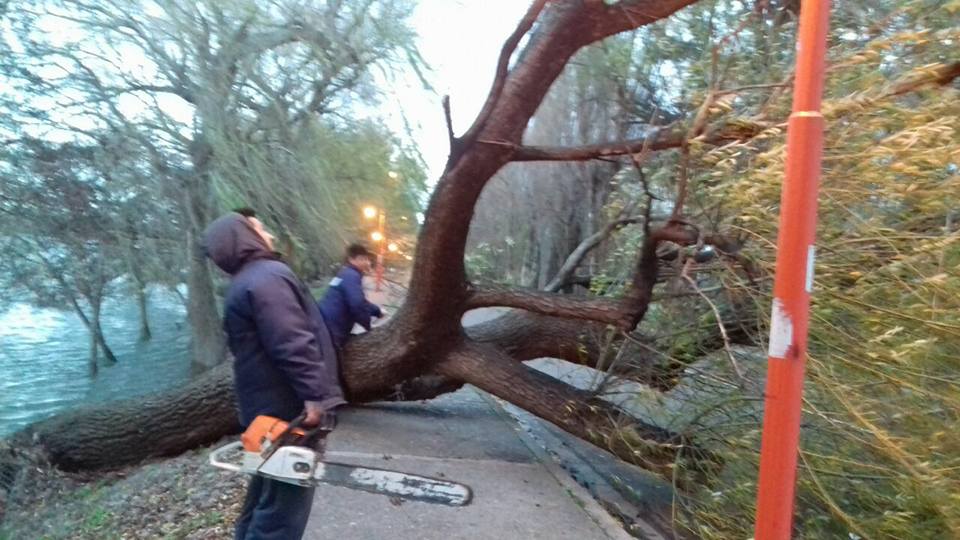 Por otra parte, un grupo de empleados municipales de Viedma pertenecientes al área de Obras Públicas, hicieron recorridas por arterias donde tuvieron que despejar las calles como consecuencia de la abundante cantidad de ramas que permanecían en el suelo. Su tarea principal tuvo lugar en los barrios donde se produjo la voladura de techos, y en la zona de bulevares cuyos árboles sufrieron las consecuencias de las ráfagas de la madrugada.