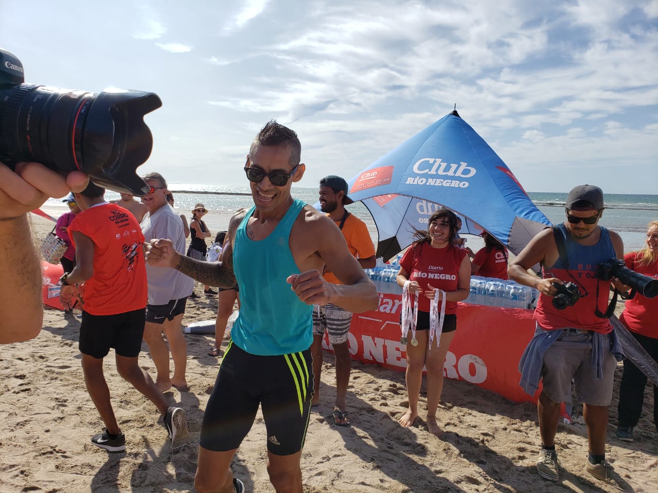 En un ajustado y vertiginoso final Hugo López, de San Antonio Oeste; Maximiliano Pinchulef, de General Conesa, y Javier Millapi también sanantoniese fueron los tres primeros corredores en atravesar la línea de llegada del Yo Corro en Las Grutas, la carrera recreativa organizada por el diario «Río Negro».