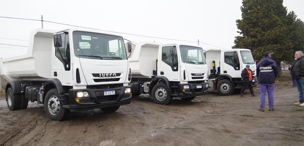 Los tres camiones volcadores IVECO Tector 0km fueron adquiridos con recursos propios de la Municipalidad y serán utilizados para el acopio de ripio, contribuyendo así a la mejora de las calles de la ciudad.