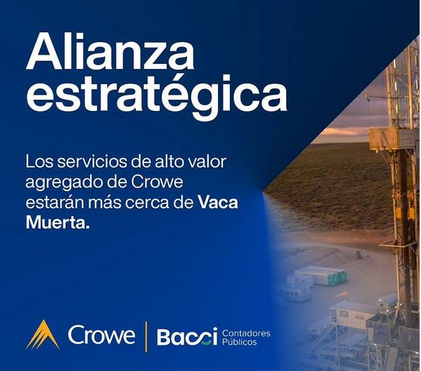 Crowe, una reconocida firma internacional que brinda soluciones de negocios con alto valor agregado, confiables y diseñadas a la medida del cliente, se alió estratégicamente con la firma Bacci Contadores Públicos (BCP SRL) en Neuquén, para llevar sus servicios profesionales y propuesta de valor internacional a Vaca Muerta.
