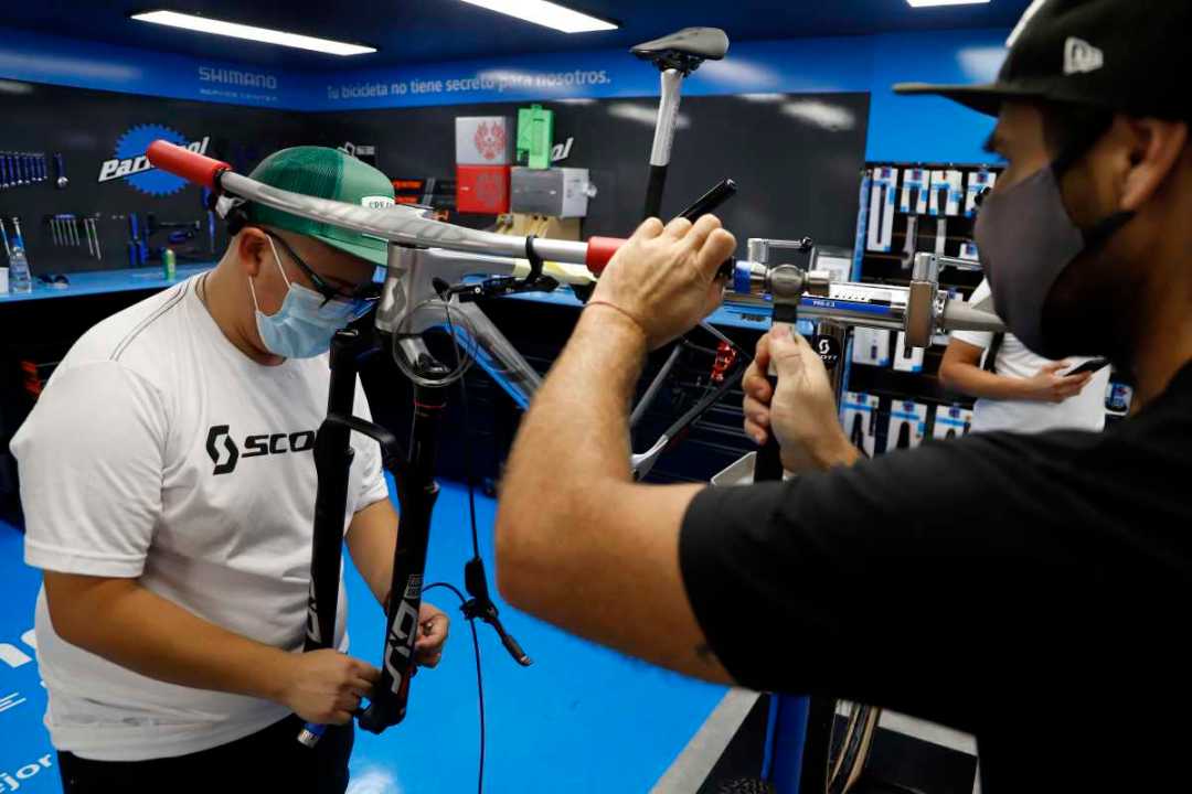 Sigamos con el recorrido. “Esto es un store pensado a lo grande para el ciclista”, afirma el dueño del lugar, Diego Coria, quien lleva años de experiencia en este rubro. Hay decenas y decenas de más modelos de bicicletas, indumentaria, calzado, accesorios tanto en la planta baja como en la alta. «Aquí tiene todo y más», agrega.