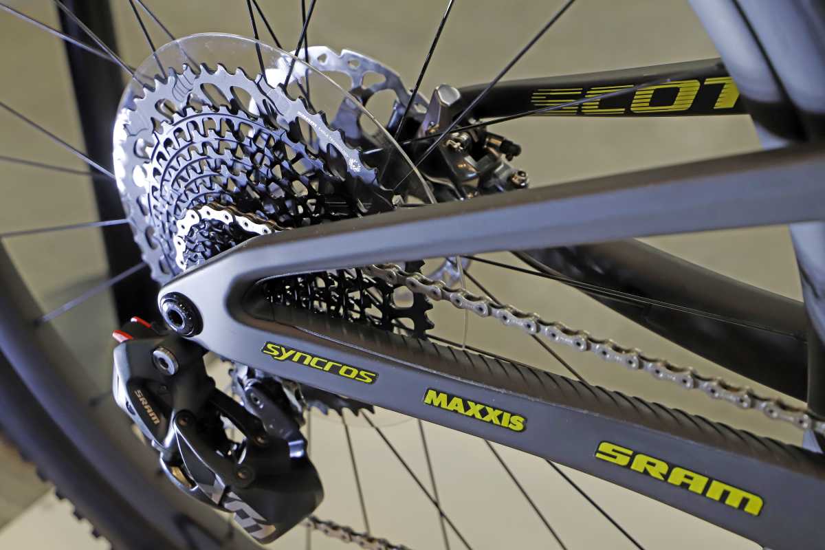 ¿Qué características tiene esta bicicleta, en particular, que concita tanta admiración? Cuadro Spark RC de carbono HM, horquilla RockShox SID Select+ RL3 120 mm, RS Nude 5 RL3, 120 mm, TwinLoc, SRAM X01 Eagle AXS 12 velocidades, frenos de disco Shimano XTR, ruedas de carbono Syncros Silverton 1.0, cubiertas Maxxis Rekon Race Foldable y tija ajustable FOX, Componentes Syncros CF.