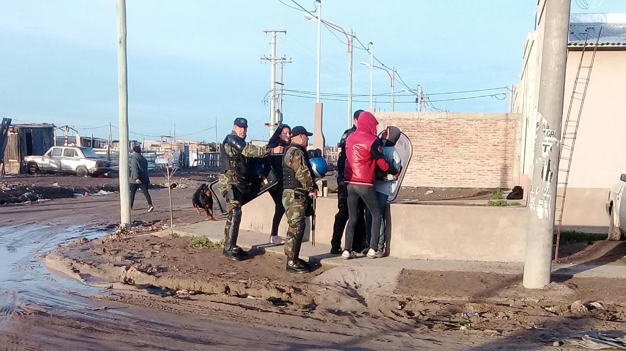 Por otra parte, los vecinos denunciaron la intervención de la Policía de Río Negro, cuyos efectivos participaron de la neutralización de quienes reclamaban. Para ello, exhibieron una fotografía en la que se observa a personal policial impidiendo el ingreso de los vecinos que estaban trabajando y se enteraron que le estaban tirando la casilla con una topadora. Lo cual llevó a preguntarse a los vecinos el motivo por el cual esperaron que la gente no esté para decir que no vivía nadie cuando en realidad estaban en su empleo.