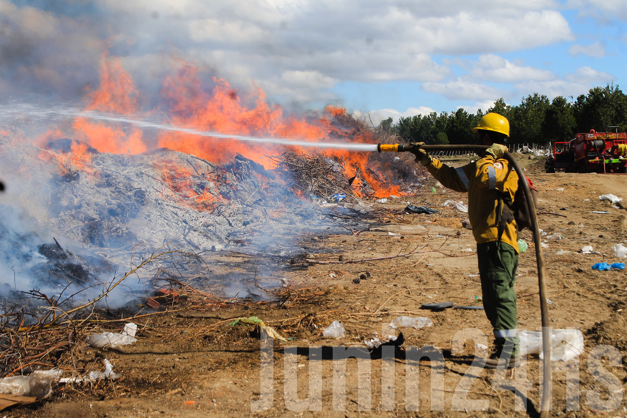 El fuego se originó en la zona de residuos verdes de la planta de tratamientos de la localidad, específicamente parte en la que se acumulan los residuos de poda. El jefe de Bomberos remarcó que era mucha la cantidad de contenido, por lo que el incendio avanzó rápido.