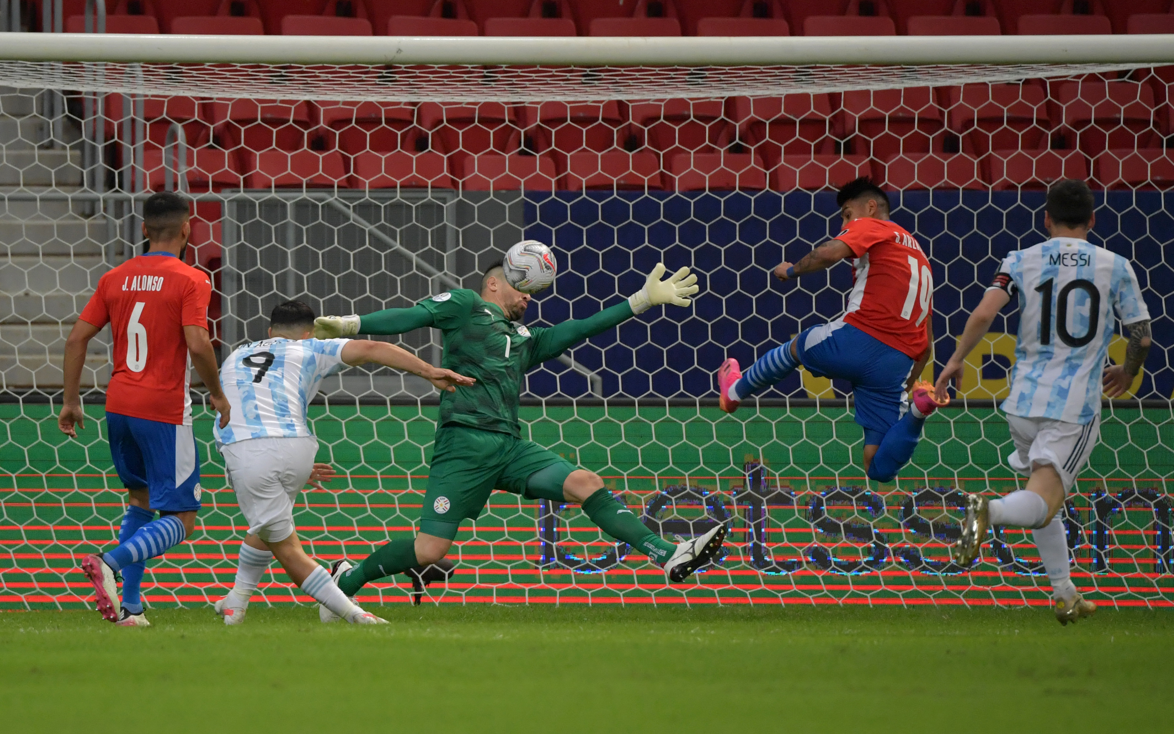 La Selección casi se va 2-0 al vestuario por un gol en contra de Junior Alonso, pero Messi estaba adelantado en el comienzo de la jugada.