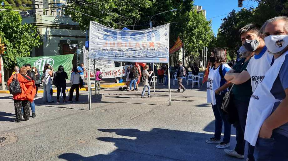 Los consejeros gremiales de ATEN en el Instituto de Seguridad Social del Neuquén (ISSN) se manifestaron en las puertas de Casa de Gobierno exigiendo que el gobernador Omar Gutiérrez «gire al ISSN los fondos necesarios para pagar a todos los jubilados la suma anunciada a los activos».