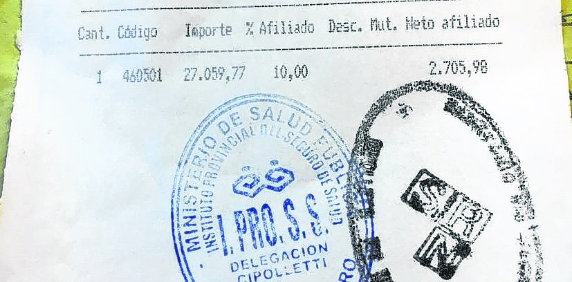 Sin embargo, en la orden de Ipross aparece un importe de $ 27.059,77 por la práctica, por lo tanto, el coseguro fue de $ 2.705,98.