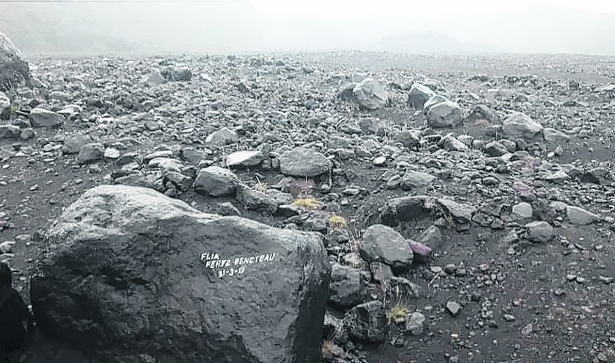 Hace dos años, una familia escribió su apellido en una piedra en la base del Lanín: “Flía Pérez Beneteau 31-3-18”. Fue tal el escándalo que se generó, que primero salieron a pedir disculpas y luego volvieron al lugar y lo limpiaron.