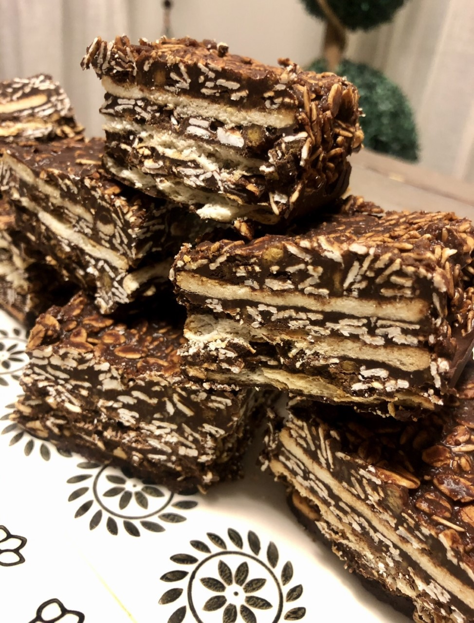 2- Poné en una fuente una capa de galletitas de agua veganas (la marca Granix por ejemplo). Seguí con una capa de la mezcla de chocolate. Otra de galletitas. Otra de chocolate, y así hasta donde vos quieras.