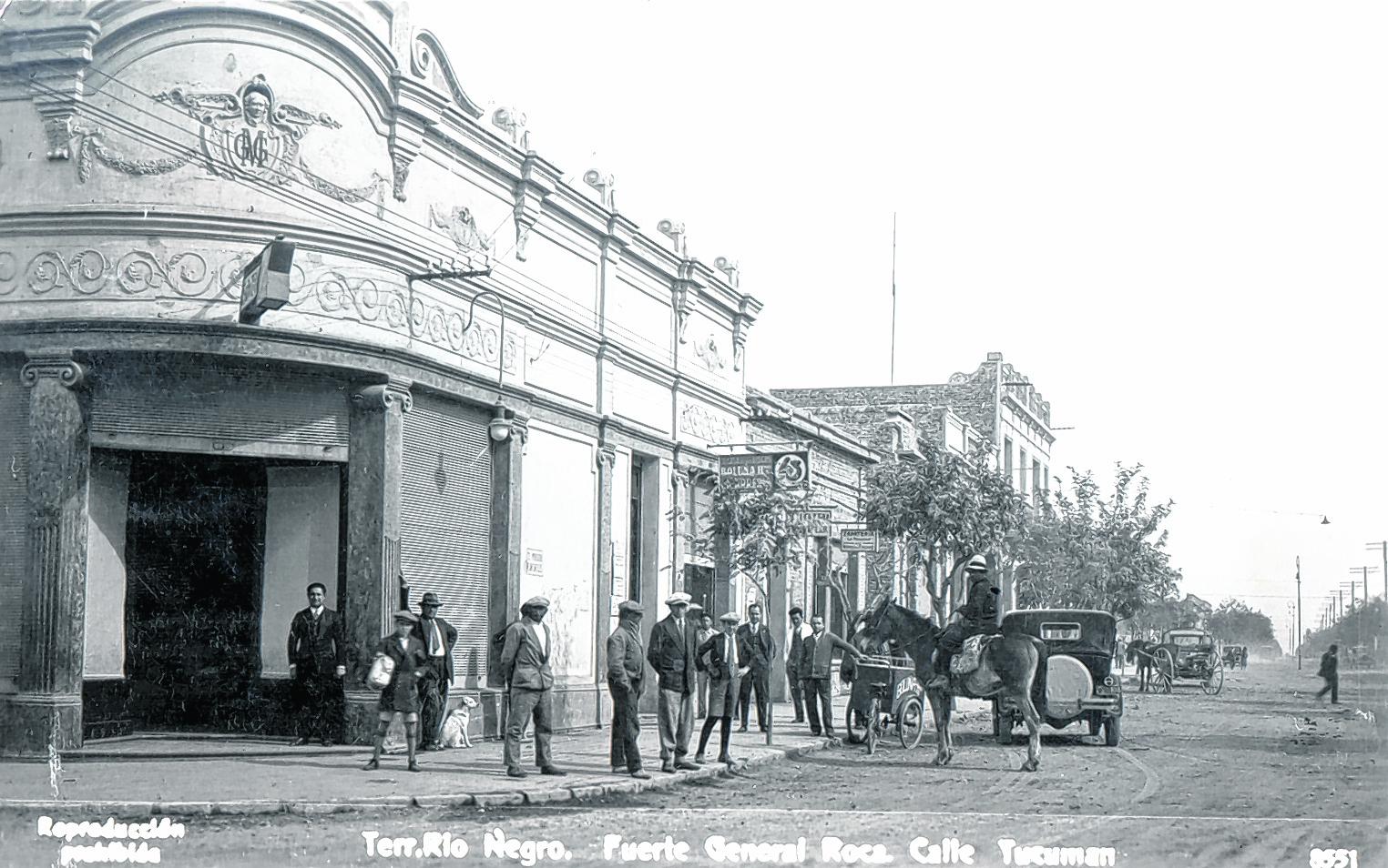 Antigua librería Delgado, Tucumán y Sarmiento (circa 1930). Edificio inaugurado en 1920 como comercio para la venta de calzado. Fue construido por el comandante Miguel Gallego, exmilitar de la campaña. Allí funcionaron distintos comercios, como la sastrería Cimerilli. Es de las pocas edificaciones que conservan su fachada original.