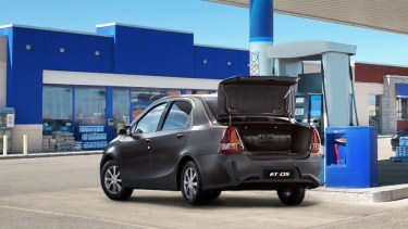 El sistema de GNC para del Etios Sedán se ofrece con 2 opciones de almacenamiento. Un cilindro de acero, de 58L y 60 Kg, con el que se obtiene una autonomía de 200 Km, o un cilindro liviano de 70L de acero y fibra, también de 60Kg, con el que se podrán recorrer más de 280 Km.