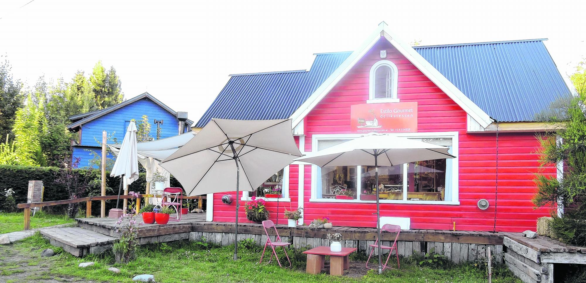 Estilo Gourmet Casa de Té se ubica en el ingreso al barrio Lomas de Correntoso. Es una pequeña casa de madera y techo negro, estilo americano. Un tipo de construcción que se puso de moda en la localidad a comienzos de la década pasada.