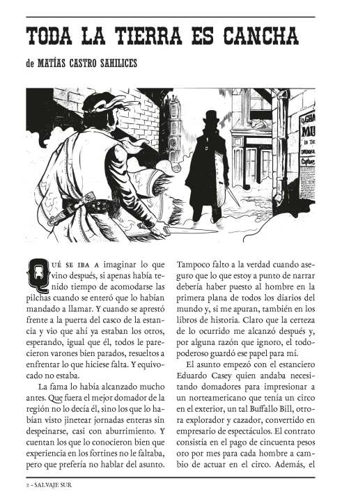 R: Lo mejor de esta revista es que hice amigos. Hay un grupo de buena gente que comparte las ganas de leer a otra gente y de leer este tipo de historias. Somos narradores, editores e ilustradores que se dan una mano. Es lo más importante. Creo que es algo que va a ir más allá de que salga Salvaje Sur o no. Yo me venía quemando con proyectos colectivos donde la gente que tenía al lado tenía talento, pero eran personas muy complicadas… A partir de ahora, solo voy a hacer proyectos con buena gente.