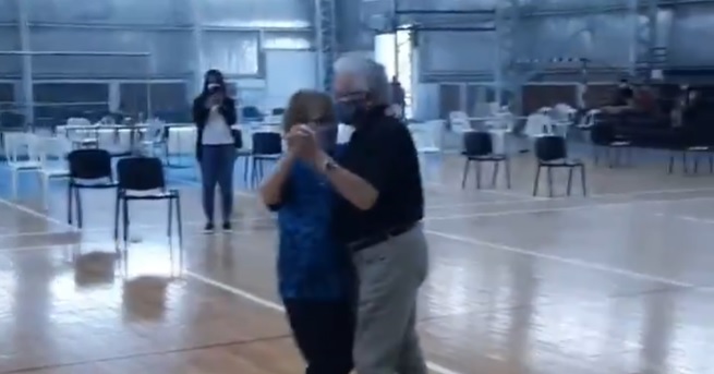 Cumplían 57 años de casados, fueron a vacunarse y bailaron un vals que emocionó a todos