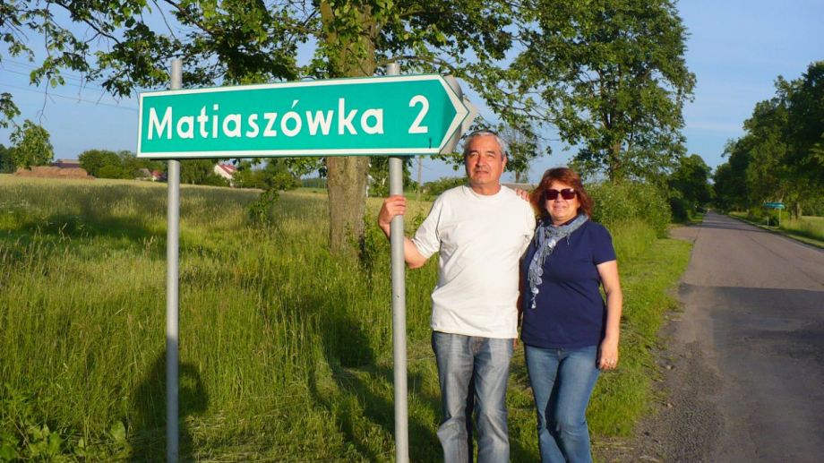 Así fue que el 13 de junio de 2013 , por la tarde, emprendimos el viaje de casi 180 km hacia el este, cerca de la frontera con Bierlorrusia en busca del lugar. Luego de un par de horas la guía hace detener el vehículo, nos hace bajar y nos señala un cartel verde con una flecha que decía Matiaszowka.