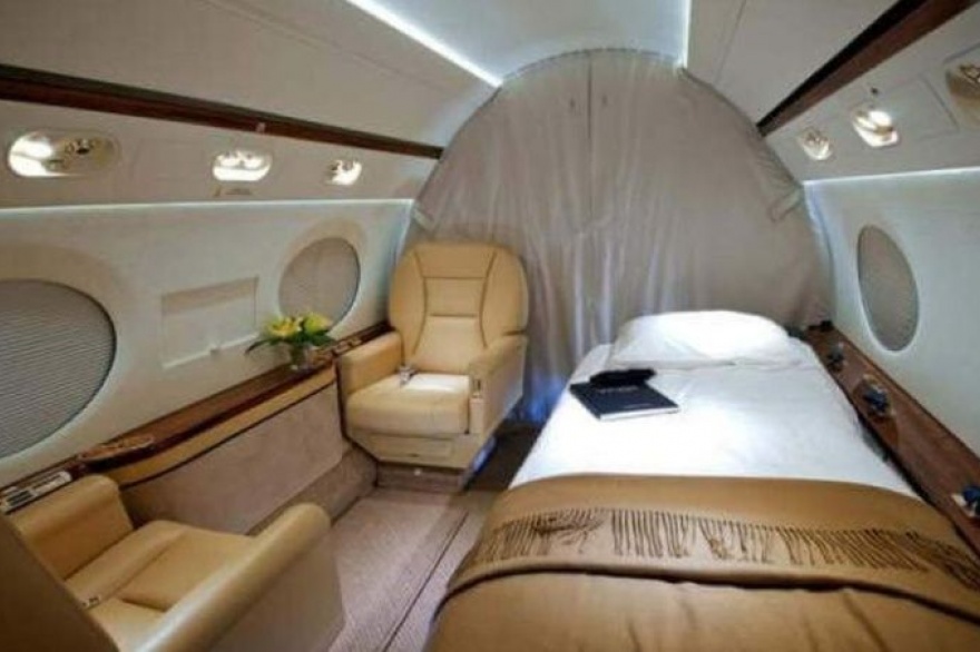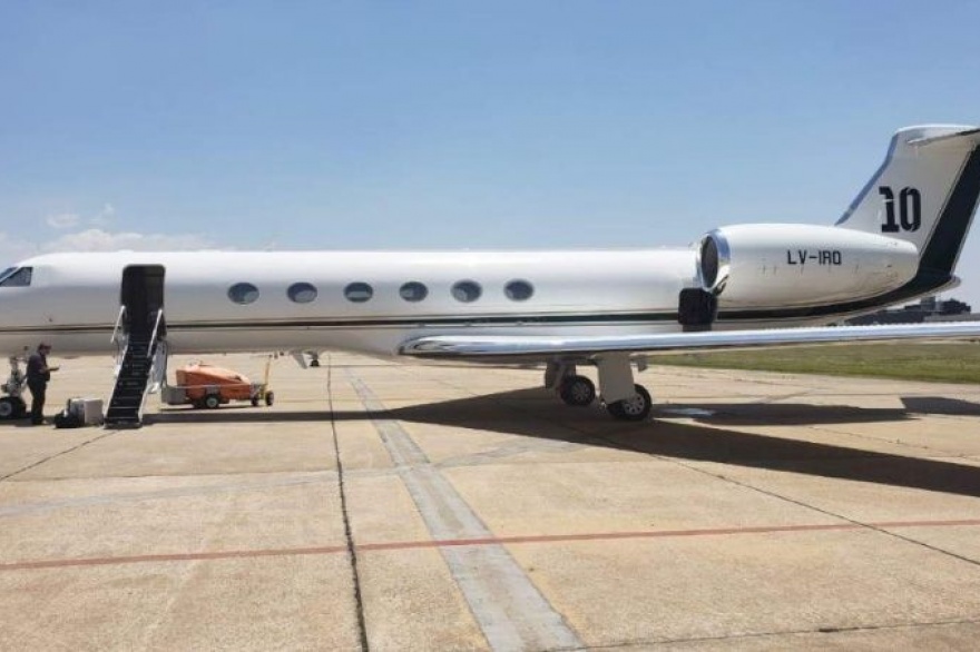 La nave tiene estampado un 10 en la cola y el nombre del futbolista, su mujer y sus tres hijos en las escaleritas de acceso al mismo.