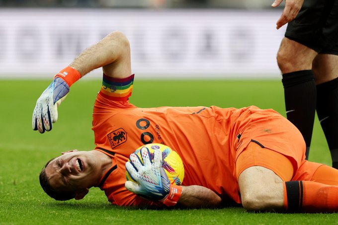 Emiliano "Dibu" Martínez, arquero titular del seleccionado argentino, recibió un golpe involuntario en la cabeza y debió ser reemplazado hoy en el partido que su equipo, el Aston Villa, jugaba con Newcastle por la fecha 14 de la Premier League y que terminó perdiendo por 4-0.
