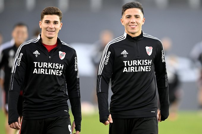RIVER Franco Armani; Andrés Herrera, Paulo Díaz, David Martínez, Milton Casco; E. Pérez o Zuculini; Santiago Simón, Enzo Fernández, N. de la Cruz, E. Barco o Matías Suárez; Julián Álvarez. DT M. Gallardo
