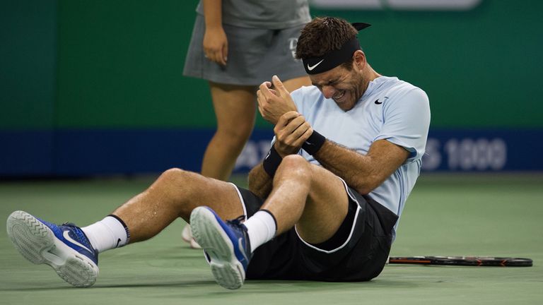 Del Potro padeció varios problemas físicos desde que debutó en el circuito profesional, las más importantes en la muñeca izquierda, tres veces operada, y la actual en la rótula derecha.