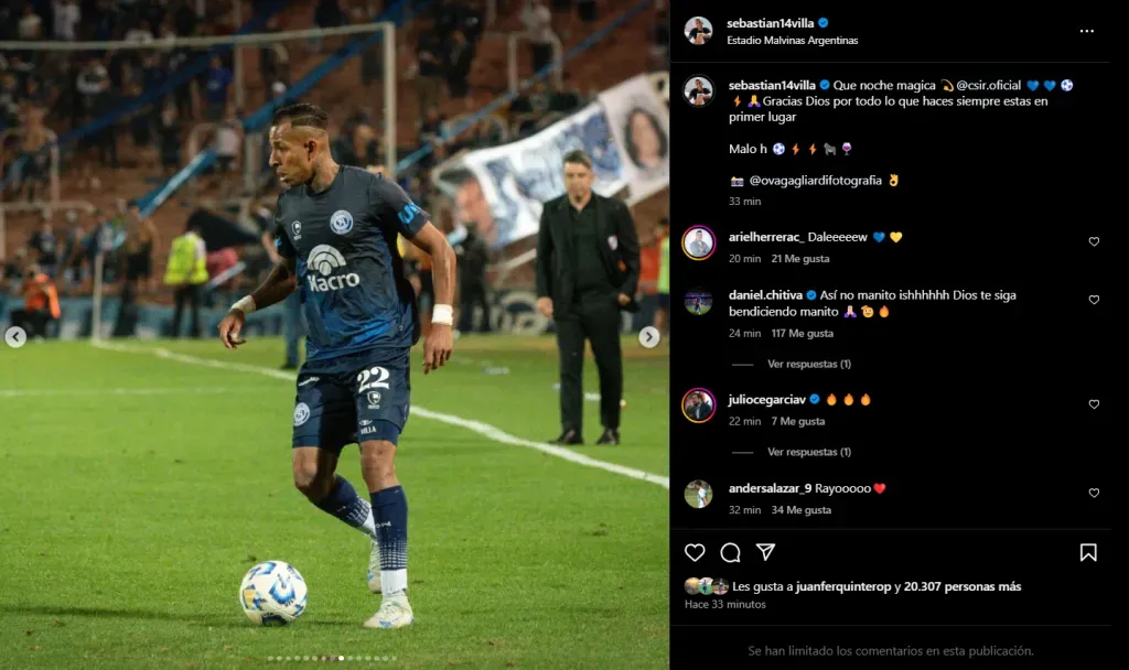 El posteo de Sebastián Villa tras el escándalo ante River, en Mendoza