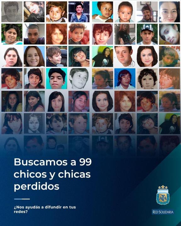 Buscan a 99 chicos desaparecidos y durante el partido de Selección Argentina proyectarán sus fotos