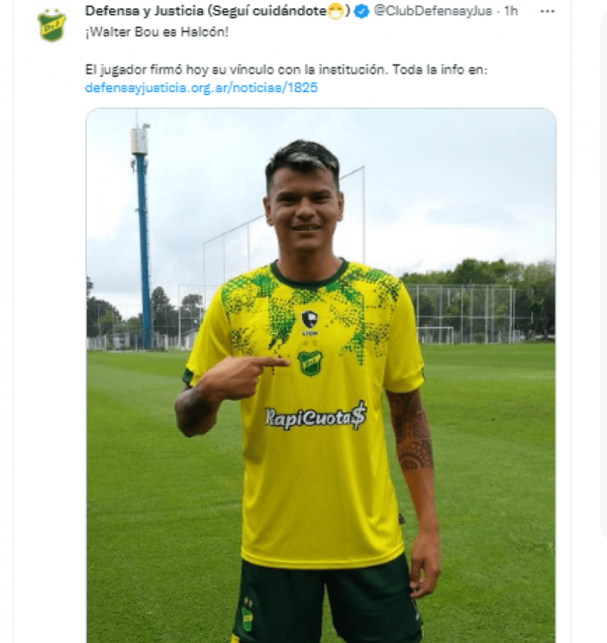 Defensa y Justicia cumplió con su deseo y pudo retener al delantero Wálter Bou, quien había estado a préstamo y después de finalizar la cesión regreso a Boca, donde se encontraba realizando la pretemporada hasta que ell Halcón confirmó que compró parte de su pase.