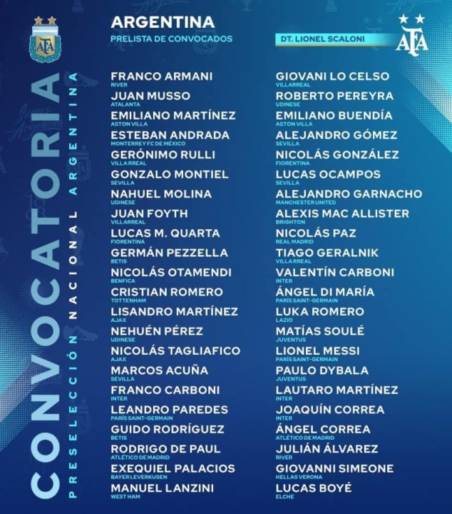 Scaloni dio a conocer el último domingo la lista preliminar de 44 jugadores y en los próximos días se conocerá la nómina final, con el recorte de algunos jugadores, sea por lesión o por decisión del entrenador, de acuerdo a lo que informó ayer el propio entrenador.