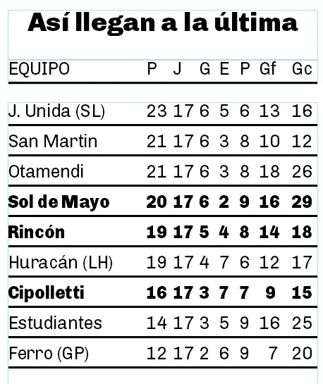 Federal A: Sol de Mayo vs. Cipolletti y Germinal vs. Rincón, sin chances pero por puntos vitales