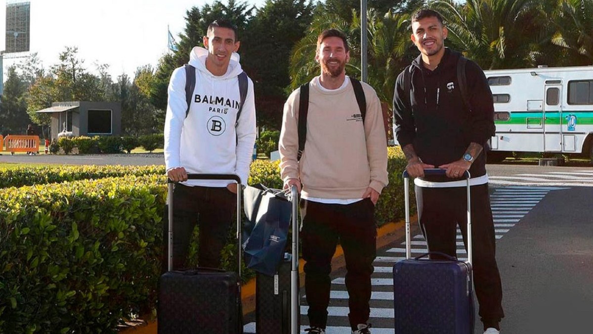 El capitán llegó acompañado de Di María y Paredes para sumarse a los entrenamientos del equipo que dirige Lionel Scaloni.