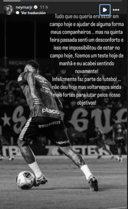 El astro brasileño no estuvo presente en la eliminación del Peixe en el Campeonato Paulista ante Corinthians. Su ausencia generó polémica ya que en los días previos estuvo en los festejos de la ciudad, por lo que tuvo que salir a pedir disculpas.