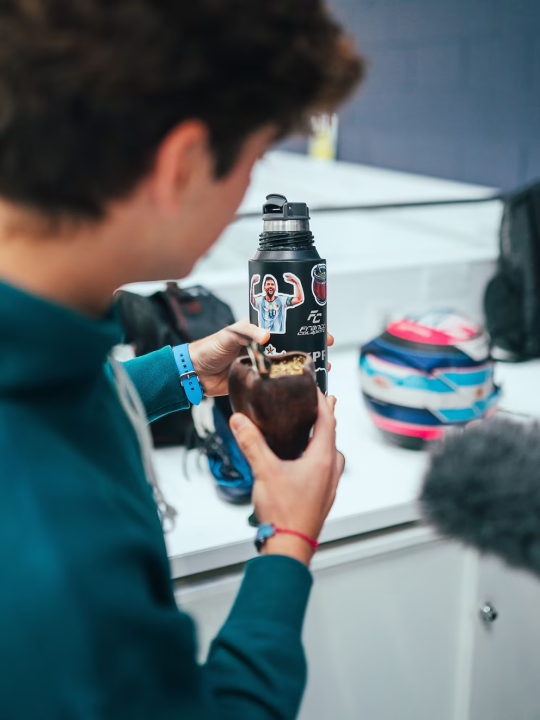 Esta no es la primera vez que Colapinto ostenta el mate en el mundillo de la Fórmula 1, ya que también se los había hecho probar a los miembros de la escudería Williams el año pasado.